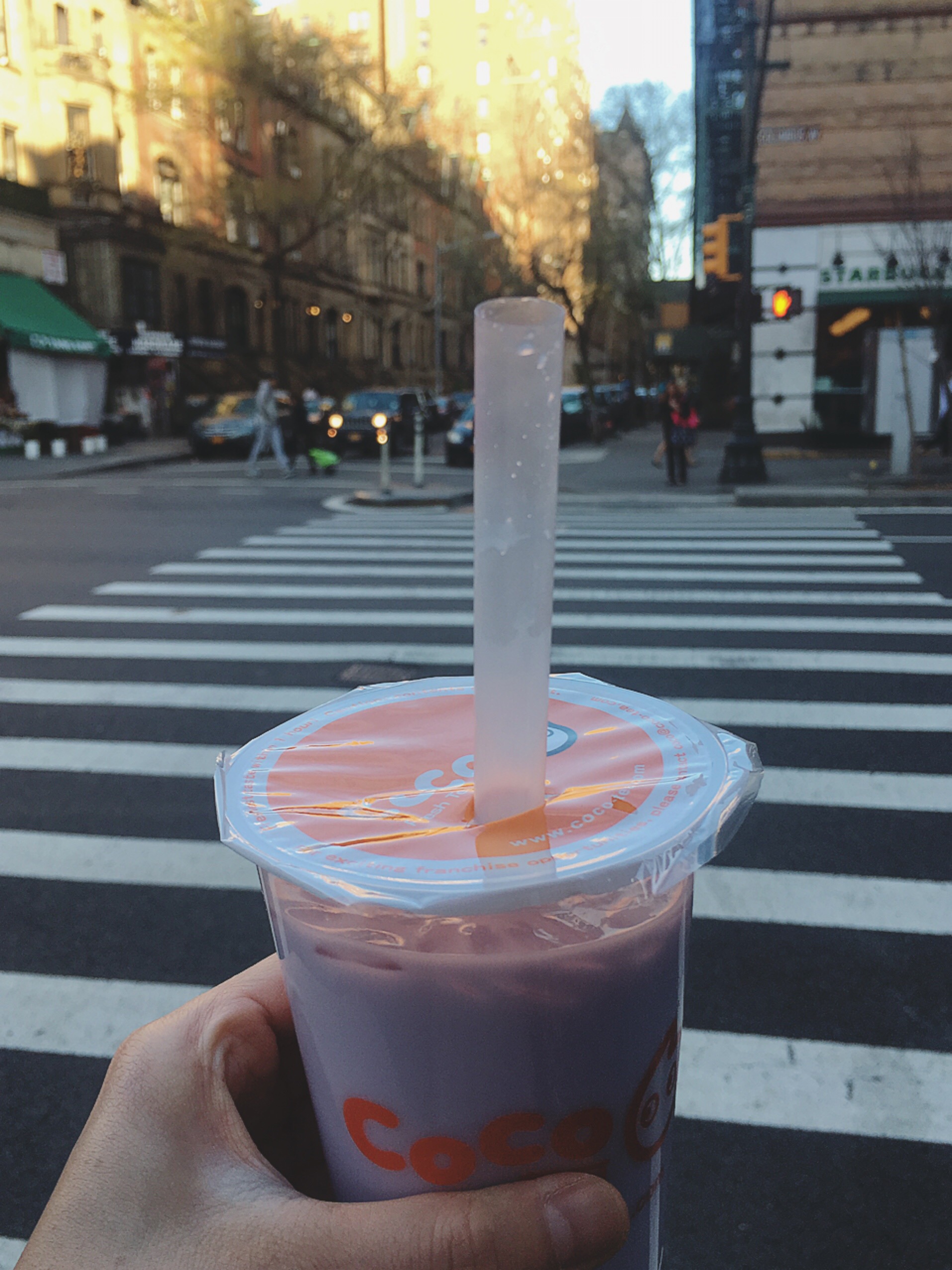 My apartment is located around 20 mins away from school by subway. On the way back home from school yesterday, I was craving for boba – so I went to this boba shop called Coco on the 72nd st., grabbed taro milk tea with half boba half lychee jelly. Instead of getting on a train, I figured I would rather walk under the great weather with tasty boba until I finish drinking.