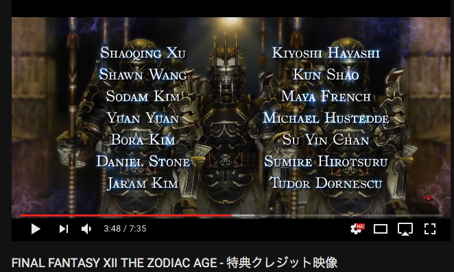 ファイナルファンタジーXIIのPS4向け最新バージョン、The Zodiac Ageが7月13日についに公開されました!気が早いようですみませんが、ゲームクリアしていただくと、エンドクレジットでもれなく私の名前を見つけていただけます。頑張ってください!